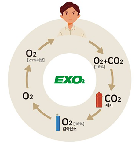 내뱉은 숨에서 이산화탄소를 제거하고 산소를 다시 공급하여 호흡 효율을 극대화합니다.