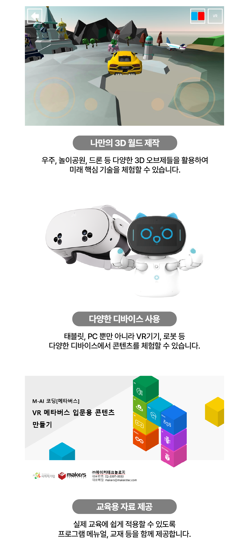 누구나 쉽게 AI 기초를 배울 수 있는 블록 모드와 다양한 오브제를 통해 나만의 3D 월드를 제작할 수 있습니다.