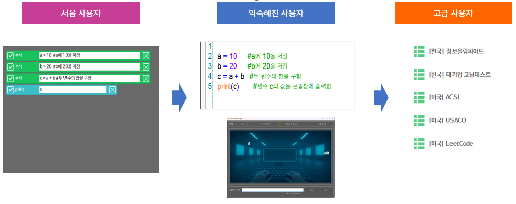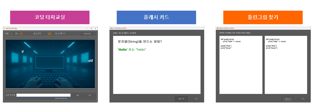 코딩 언어의 구조를 눈으로 익히는 콘텐츠(코딩타자교실, 플래시카드, 틀린그림찾기)